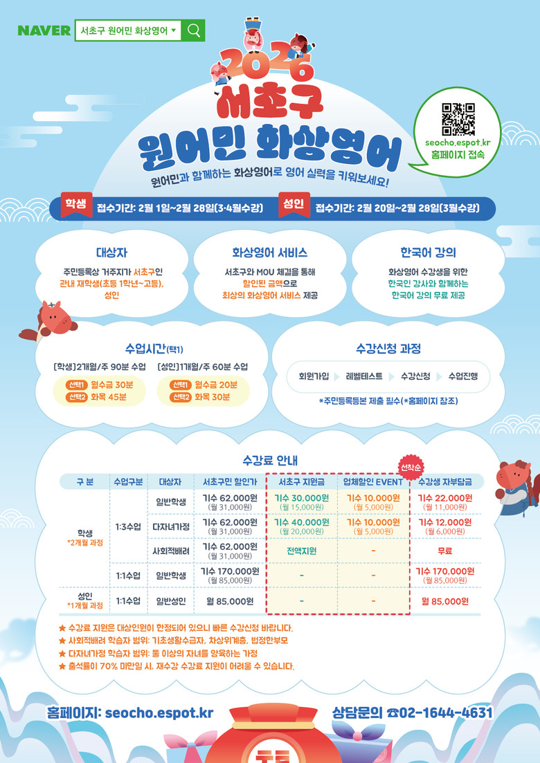 | ▲ ‘2026 서초구 원어민 화상영어‘ 안내문. 서초구 제공. |
